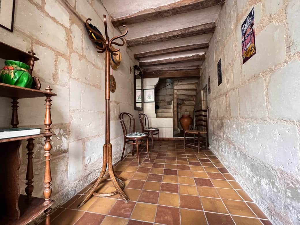 Demeure entièrement restaurée. Tuffeaux et poutres d’époque.